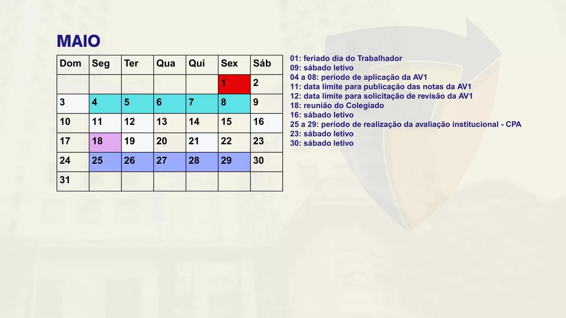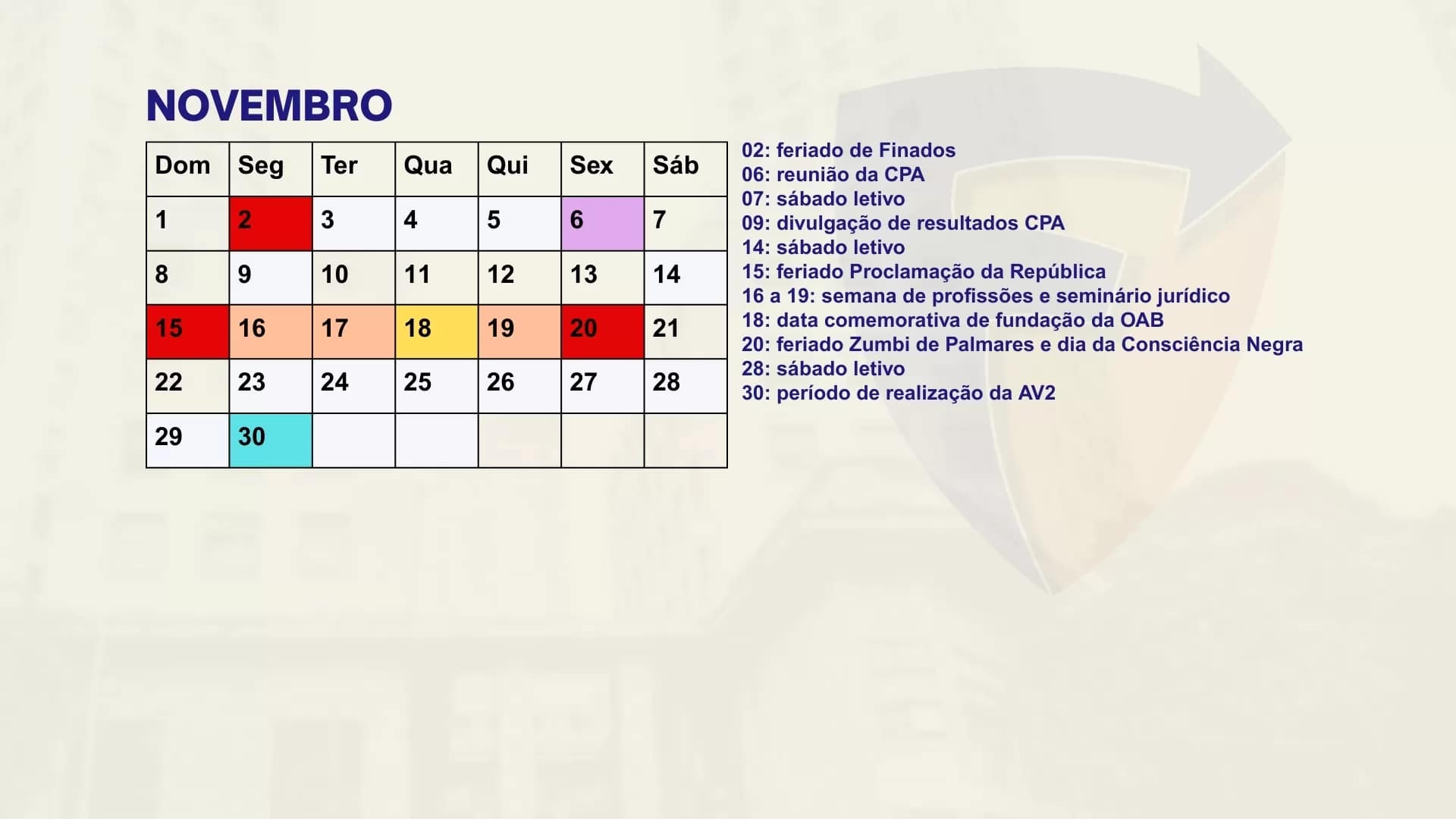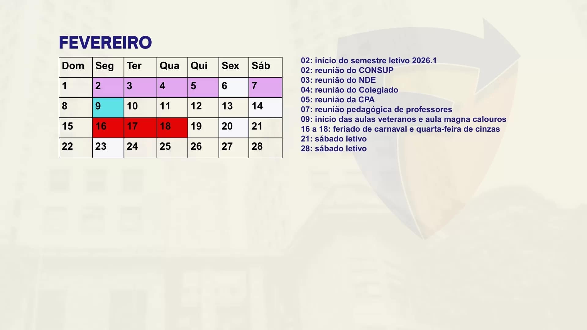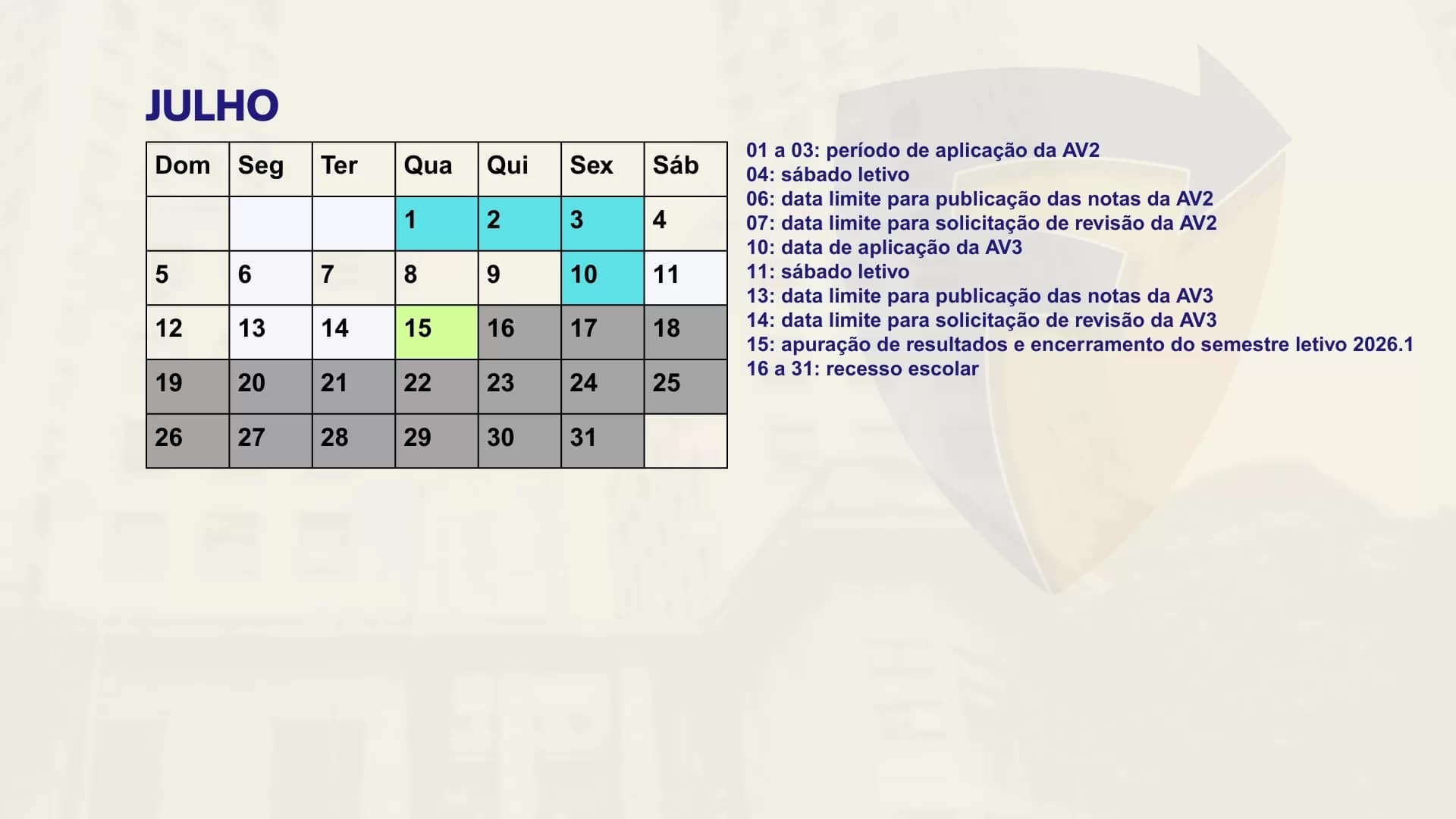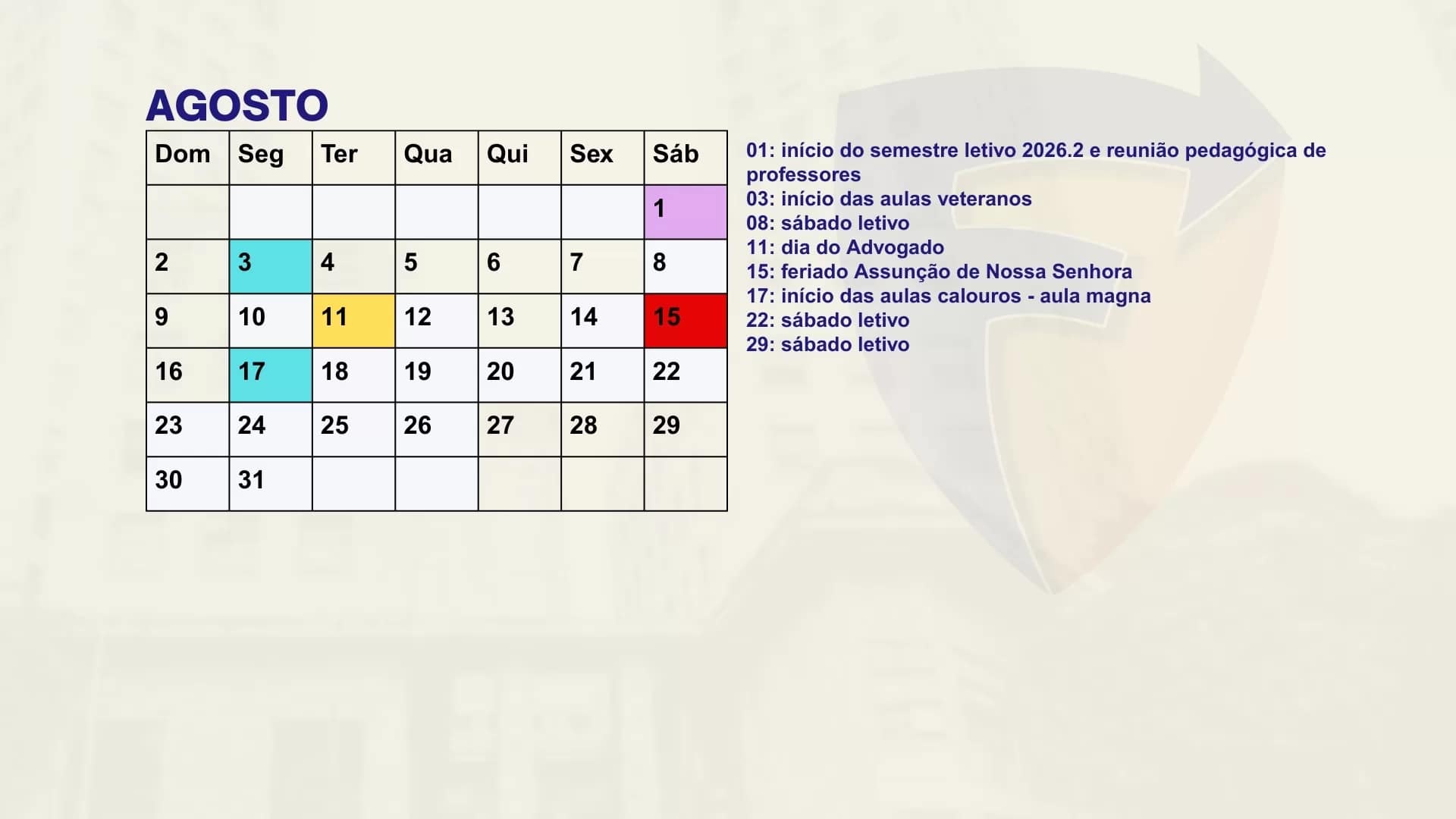 Consulte aqui o calendário acadêmico para o semestre letivo.