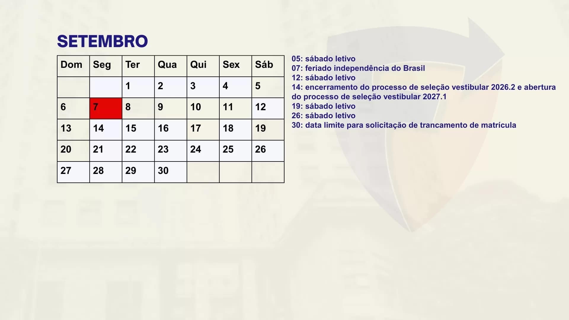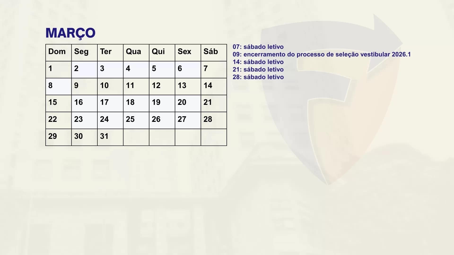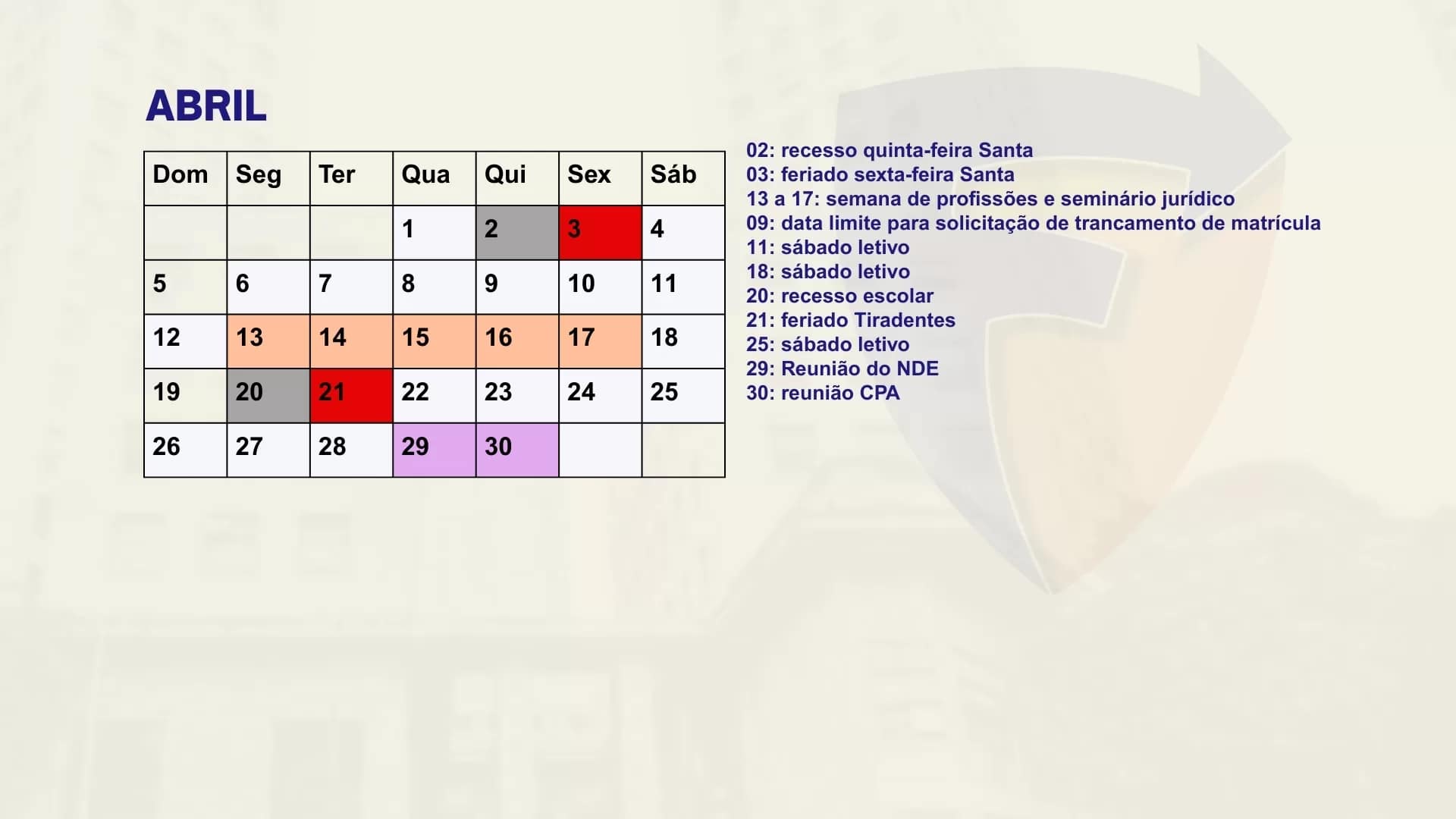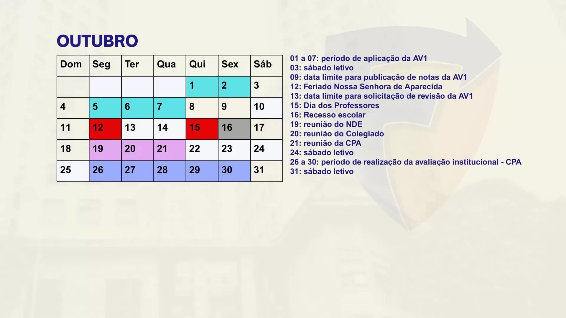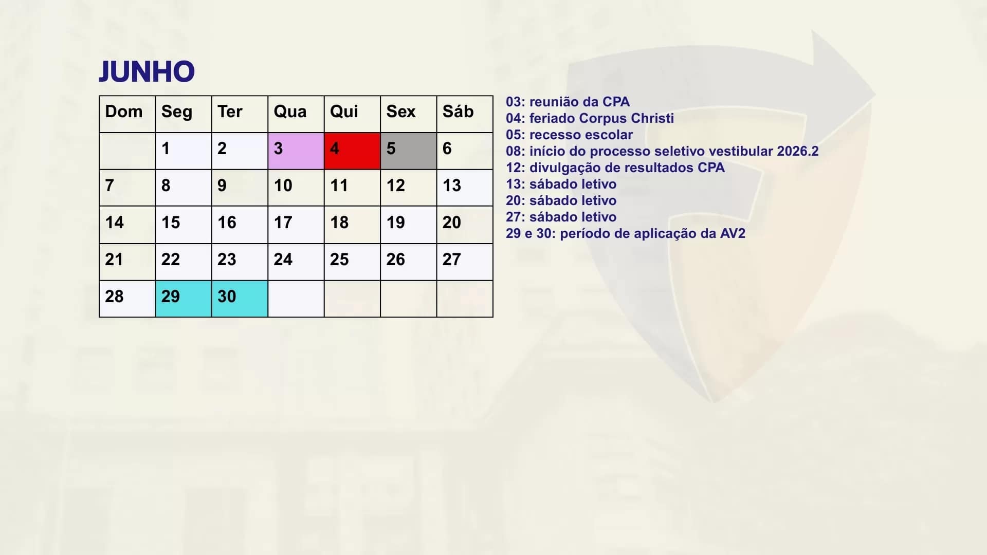 Consulte aqui o calendário acadêmico para o semestre letivo.